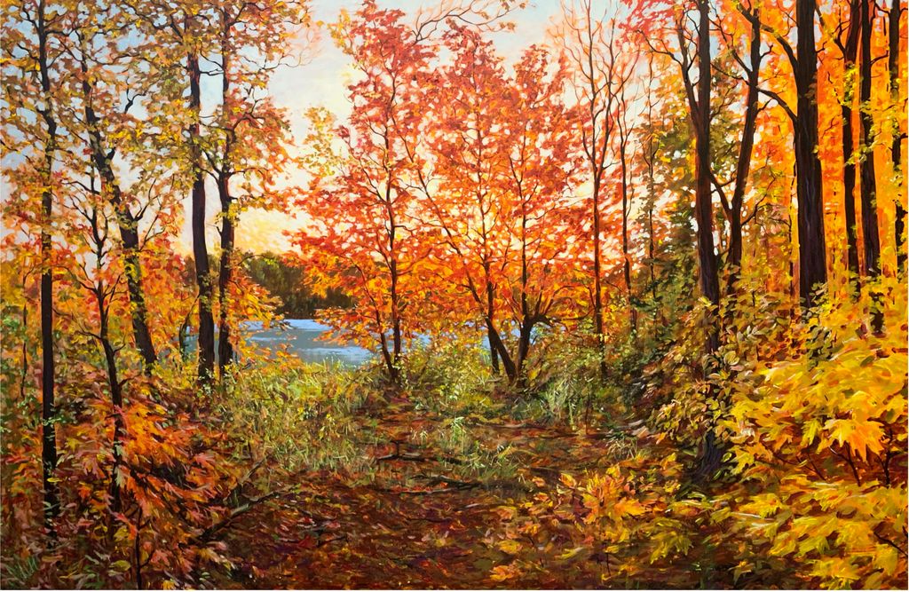 Artist Statement: "Being in nature and painting nature is an exquisite joy for me, and I want to share these feelings with my audience. Textures of rocks and bark, the sound of wind and animals in the woods, nod of the flower and the smell of snow. Birds move along brunches, clouds weave along the sky, and the sun illuminates everything with rainbow colours. I feel that the ancient way – aligning your life with nature: shapes of trees and rocks, shadows and lights - gives an excellent opportunity to express your soul. One day and the same place, it’s cheerful, another - miserable and angry, but it's always glorious. I am chasing light that renders mundane objects into whimsical shapes and creates the scenery with mood and liveliness. I draw inspiration for my landscape paintings mostly from my travels across Ontario, from the unspoiled magic of North American woods, lakes and rivers. Sometimes it's trip to Kawartha, and sometimes - just a walk to the local park in the Great Toronto area." -Anna Kutishcheva