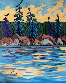 Lynda Flanagan lives in Hamilton, Ontario and has an Honours of Fine Arts degree from McMaster University. She paints contemporary interpretations of the Canadian landscape. Forming connections with nature and developing strong roots with the land are prevalent themes in her work. Her love of nature shines in every tree and rock formation. She is passionate about spending time outdoors and is at her best when able to connect with the land. Her acrylic paintings embrace both the boldness of colour and the ruggedness of nature, through the use of wide sweeping brushstrokes.