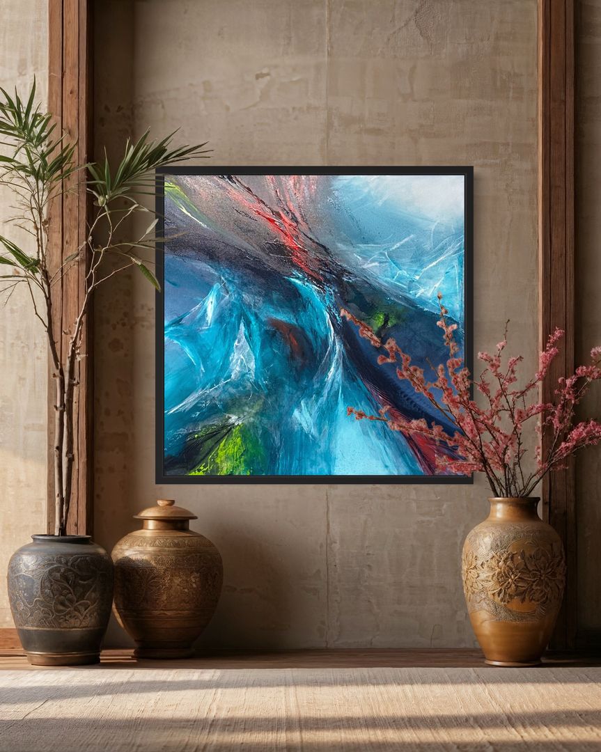 Angelina Bontempo is a self-taught artist who works with acrylic paint. She finds inspiration in the freedom of expression found in abstraction; the effects of colour, texture and emotion create a strong compositional design for the viewer to reflect through.