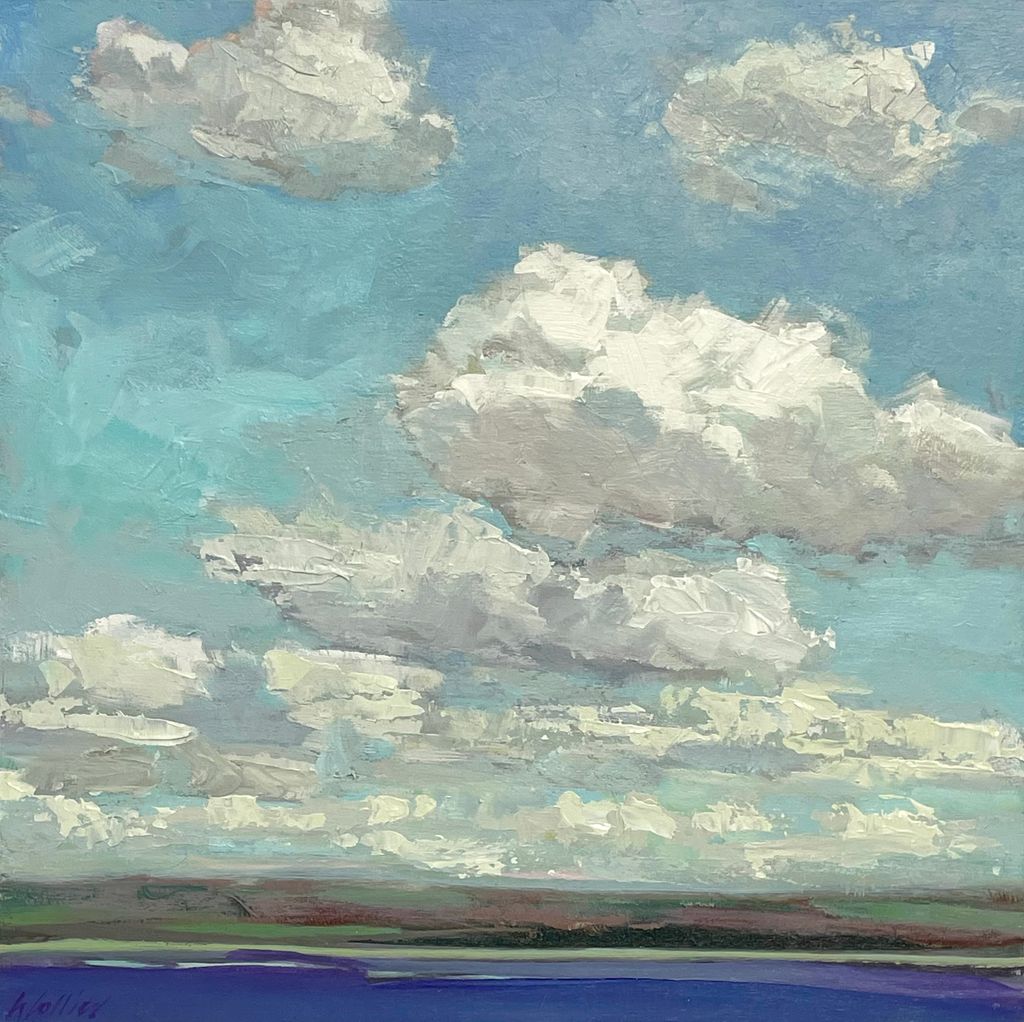 Gabriella Collier is a contemporary landscape painter living in Oakville, Ontario. Her distinctive style emanates serenity and peacefulness. She focuses on picturesque landscapes of clouds, water and beaches, primarily using a pale, soft palette, with a combination of texture, layers and glazes to create depth and interest.