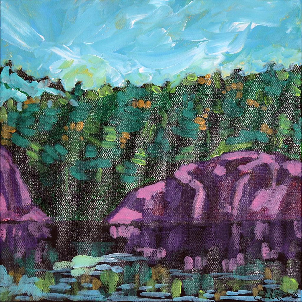 Janet Horne Cozens began studying art at the age of two in Japan and continued after her family immigrated to Northern Ontario. She is a graduate of Music Performance from the University of Toronto and Fine Arts from the Ontario College of Art. Her work explores the relationship between the natural world and us, the viewers, using colour, texture and shape. With influences from the Group of Seven, First Nations artists and her own background as a printmaker, Cozens has developed a style that reflects not only what the viewer expects to see in these landscapes, but also the hidden influences of people on these views through the unexpected use of man-made pigments.