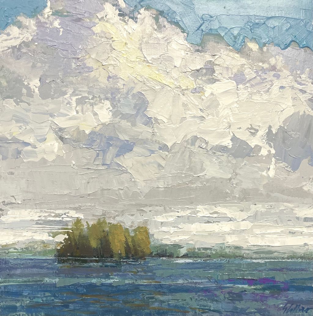 Gabriella Collier is a contemporary landscape painter living in Oakville, Ontario. Her distinctive style emanates serenity and peacefulness. She focuses on picturesque landscapes of clouds, water and beaches, primarily using a pale, soft palette, with a combination of texture, layers and glazes to create depth and interest.