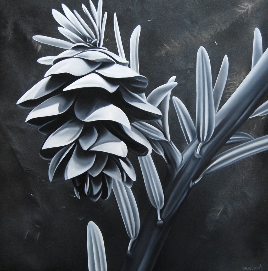 Leah Olsen-Kent’s artistry encapsulates a deep connection to the natural world, emphasizing the serenity and quietude that nature can offer. Her technique involves using spray paint, oil paint and stencils to create detailed images on wood panels or canvases. By starting with a monochromatic base and building layers to add depth and contrast, Leah’s paintings become a visual exploration of the delicate play of light and shadow found in the natural environment. Her work resonates with the minimalist aesthetic, inviting viewers to immerse themselves in the subtle beauty and peaceful solitude of nature. Leah’s approach focuses on capturing the essence of moments that might otherwise go unnoticed in the chaos of daily life. The monochromatic and limited colour palettes in her paintings add a sense of calm and introspection, allowing observers to reflect on their own feelings and memories as they interact with her art. Leah works out of her home studio in Cambridge, Ontario and holds a Bachelor of Arts from the Ontario College of Art and Design in Toronto.