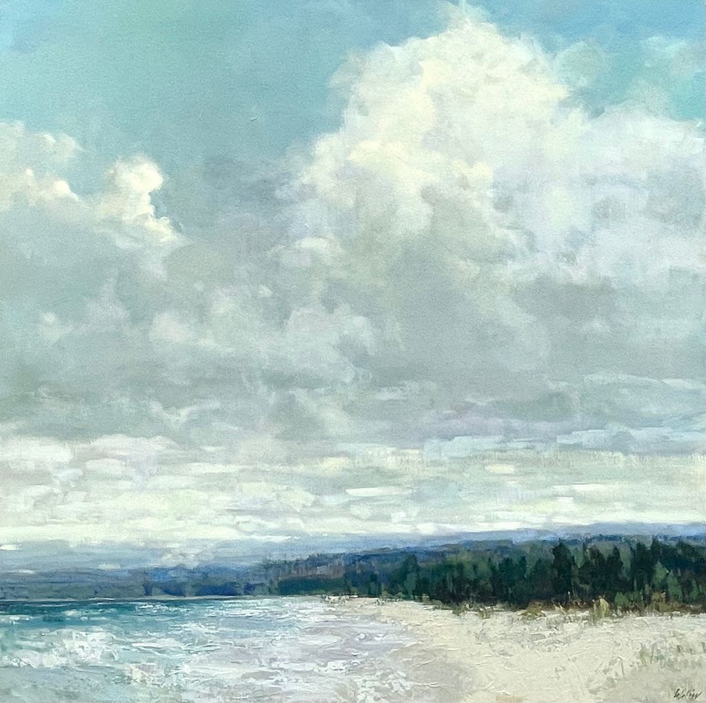 Gabriella Collier is a contemporary landscape painter living in Oakville, Ontario. Her distinctive style emanates serenity and peacefulness. She focuses on picturesque landscapes of clouds, water and beaches, primarily using a pale, soft palette, with a combination of texture, layers and glazes to create depth and interest.